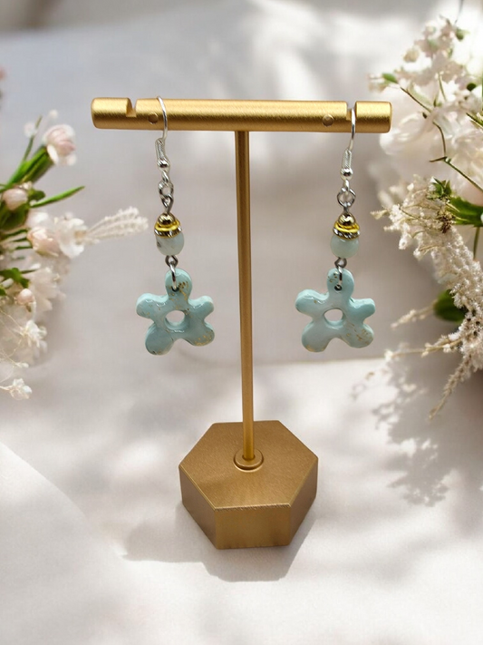 Mint & Gold Whimsical Flower Dangle Earrings