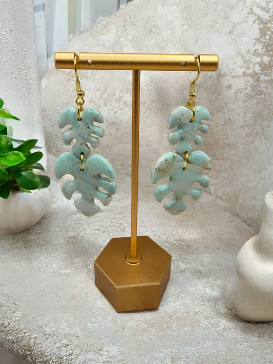 Mint & Gold Monstera Leaf Dangle Earrings