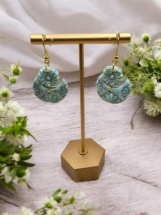 Mint & Gold Floral Imprint Dangle Earrings